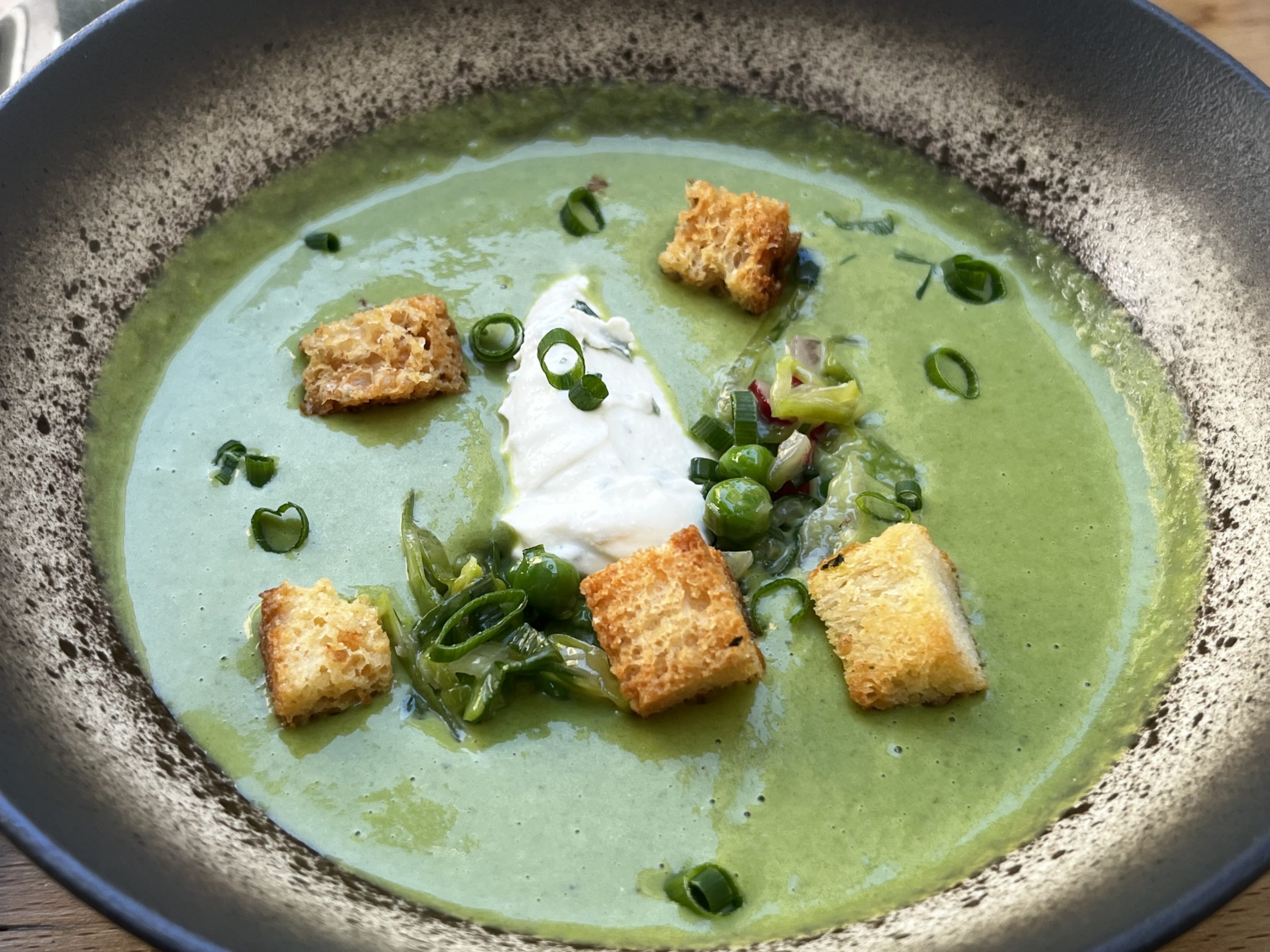 Pierre ► Gaspacho de petits pois, ricotta aux fines herbes.