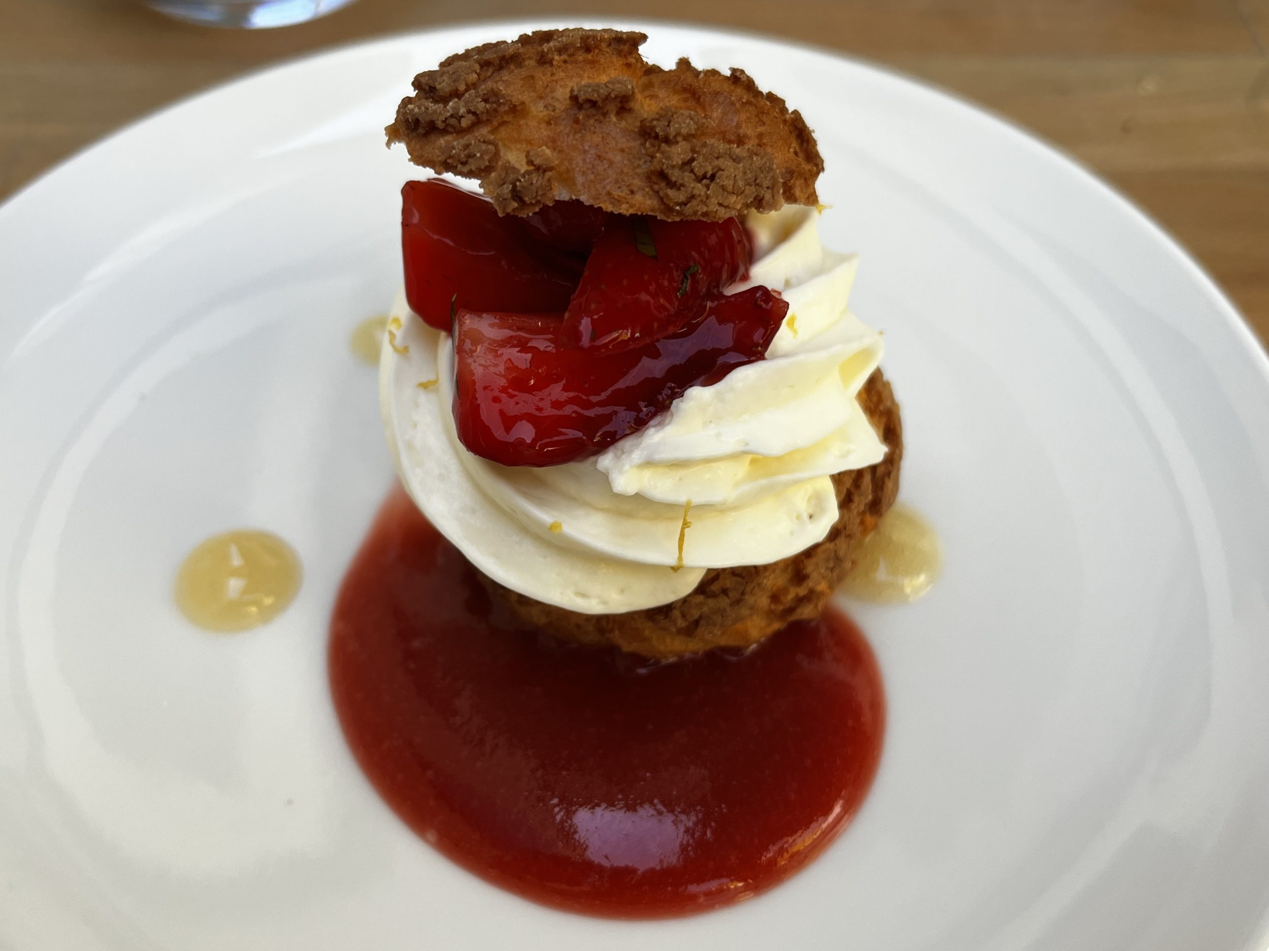 Sandrine ► Chou craquelin, citron, fraise, livèche.