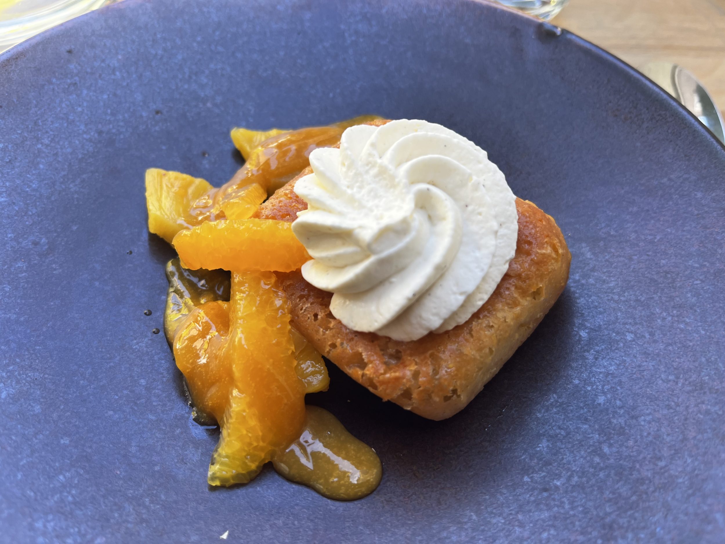 Pierre ► Baba au rhum, orange, coulis ananas.