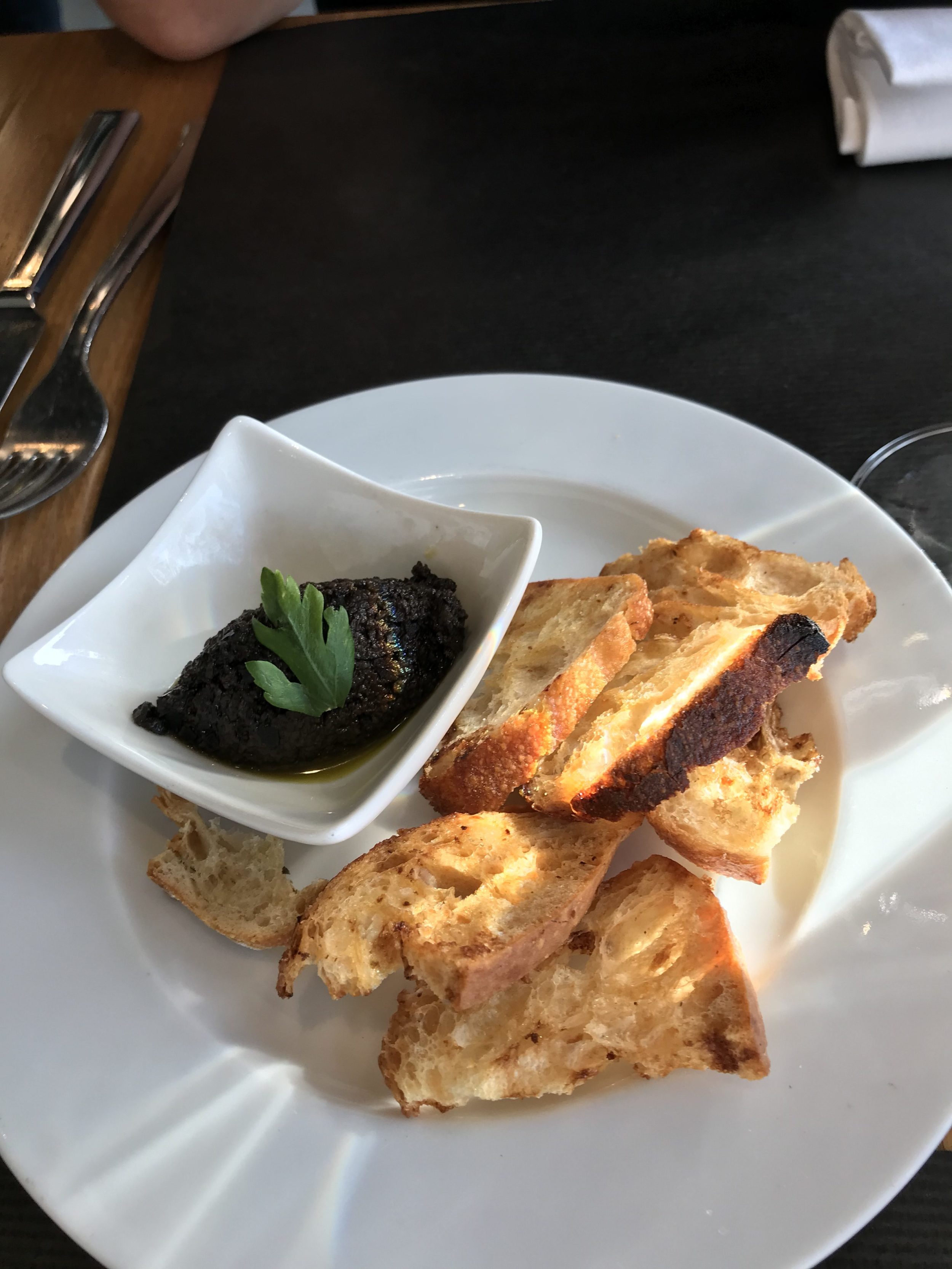 Nous avions un bon souvenir de notre précédent repas. Cette fois, la note baisse un peu, à cause de la petite part de merlu pour Monsieur, et de l’assaisonnement tellement présent dans les couteaux qu’on ne sentait pas le coquillage, plus le service hyper pressé. Dommage, on est toujours aussi fan de la vue !