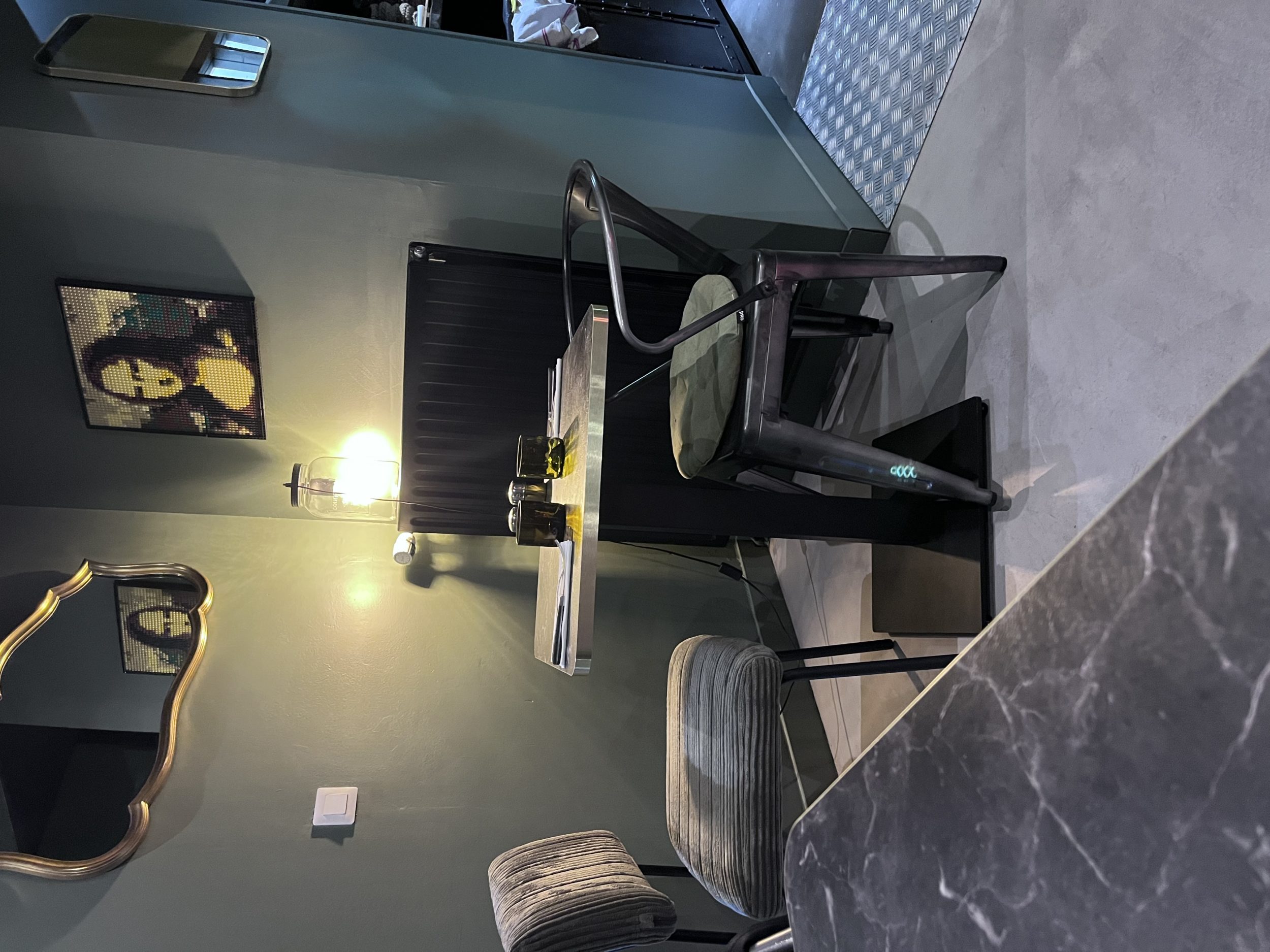 Restaurant près de la gare avec un décor industriel de bon goût.