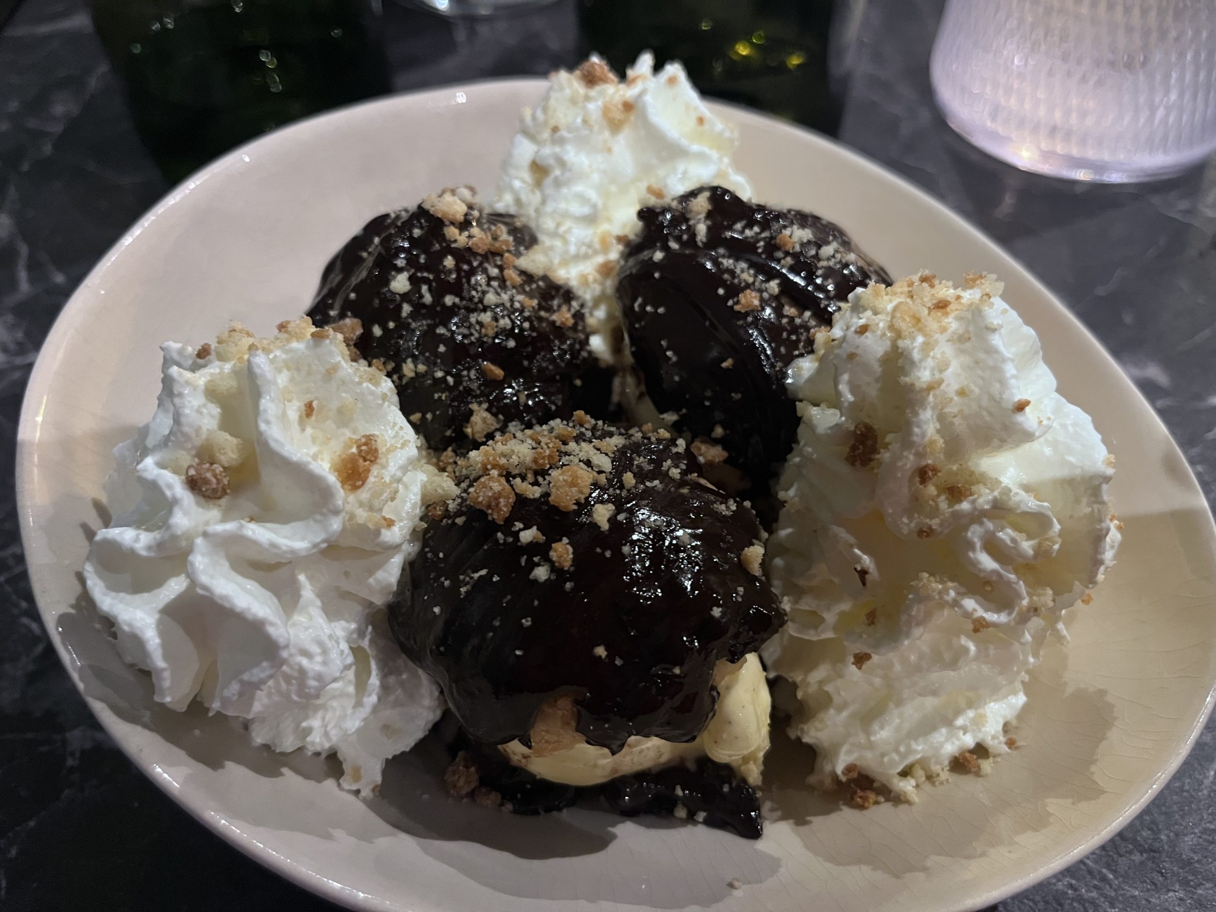 Sandrine ► Profiteroles maison, glace vanille, éclats de sablé breton.