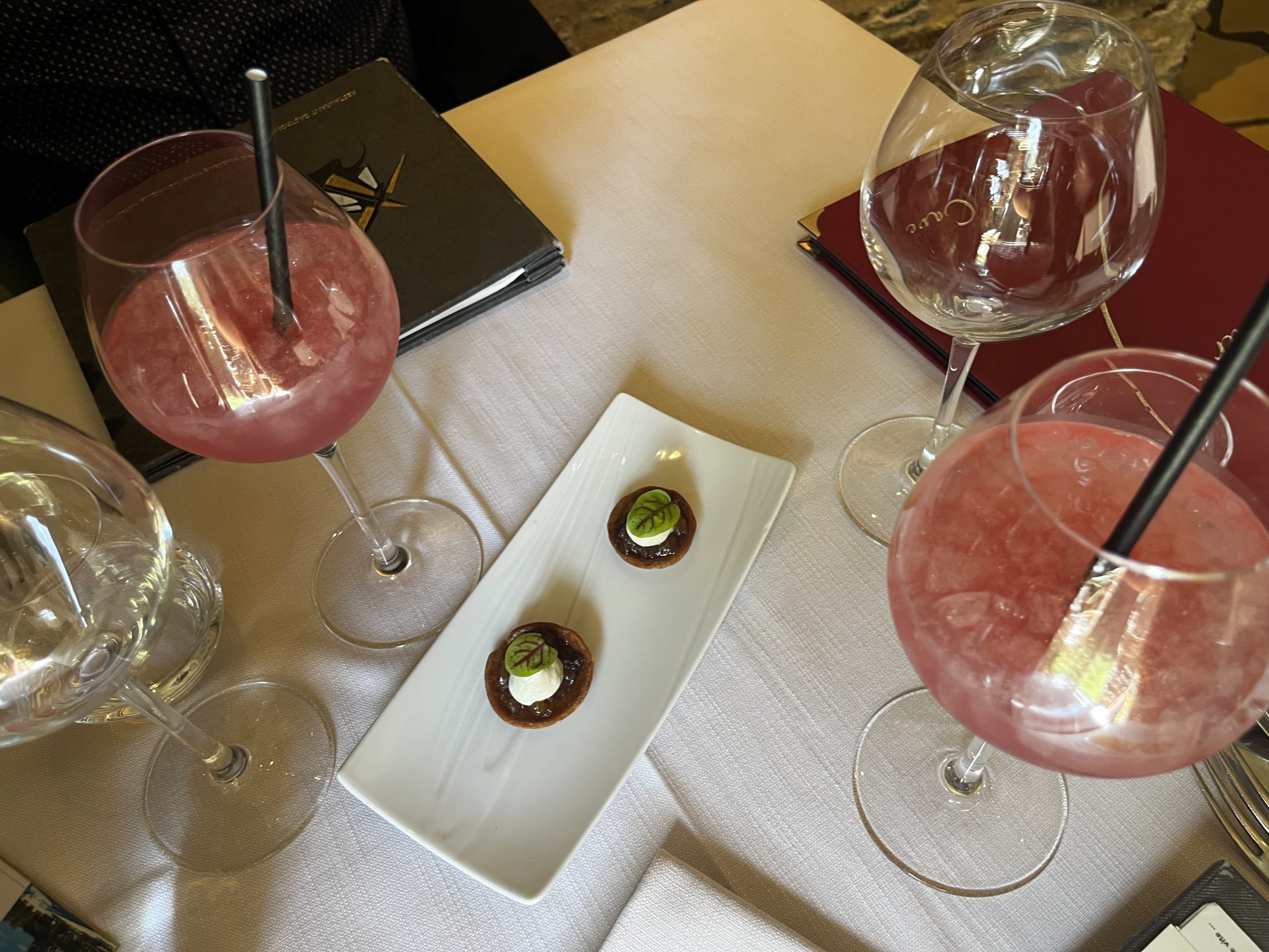 2 cocktails maison (Litchi, Pétillant rosé Saumur, Goyave).