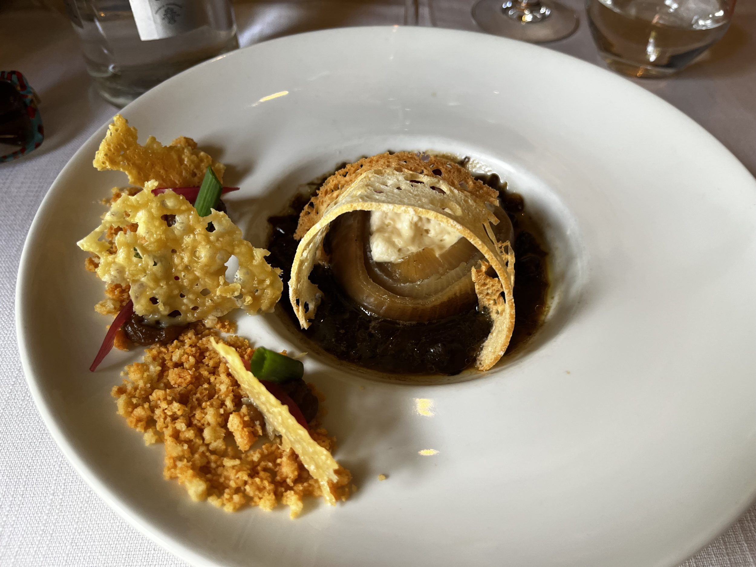Sandrine ► La soupe (Oignon confit dans sa peau, mousseux et crumble de comté au lait de pain grillé, confit d’ail).